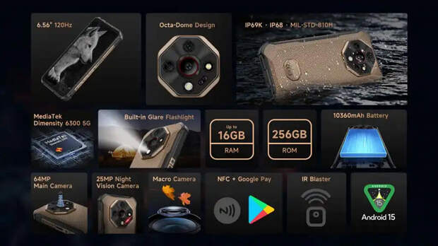 Armor X16 Pro базируется на SoC MediaTek Dimensity 6300 5G, имеет 16 ГБ ОЗУ и 256 ГБ флеш-памяти. У Armor X16 платформа MediaTek Helio G91, 12 ГБ ОЗУ и 128 ГБ флеш-памяти. Обе модели оснащены камерой ночного видения. Разрешение основного датчика главной камеры Armor X16 Pro — 64 Мп, Armor X16 — 48 Мп. Старшая модель наделена модулем NFC и ИК-излучателем для управления бытовой техникой. Цены, увы, пока не раскрыты.